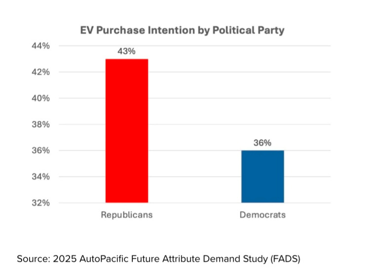 “AutoPacific’s FADS data show that among Republicans who do NOT want an EV, only 13% say political beliefs are a reason they don’t want them. Rather, cost and charging/range anxiety - the usual EV rejection reasons - top the reasons among Republicans to reject an EV.”